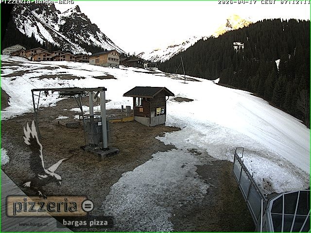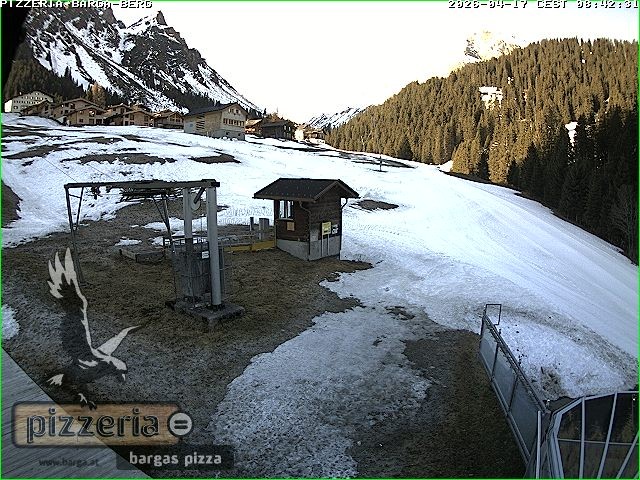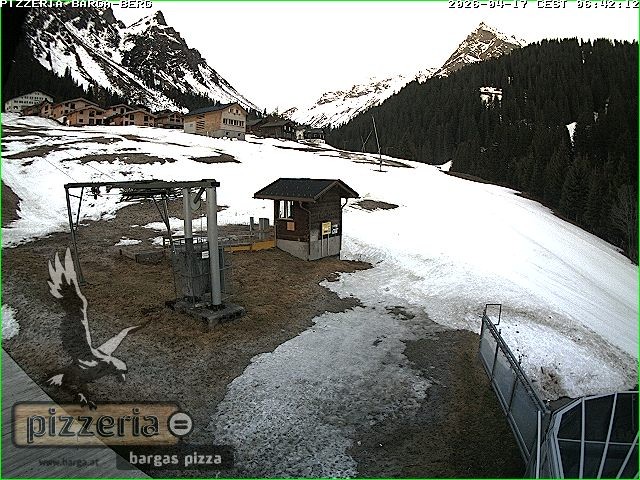 Archiviertes Webcam Bild: Gargellen: Talabfahrt bei Pizzeria Barga am 17.04.2026 um 06:15 Uhr 06:00