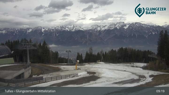 Die Video-Webcam zeigt einen tollen Blick von der Mittelstation am Glungezer in Tulfes. Hier befindet sich auch die Bergstation der Glungezerbahn sowie die Talstation des neuen Tulfeinexpress.