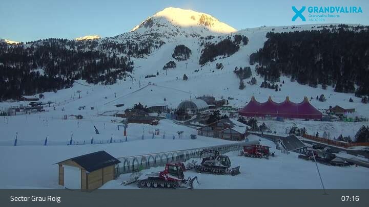 Archived webcam image showing Grandvalira: View Pic de Cubil - Grau Roig on 16 Mar 2026 at 07:27 06:00