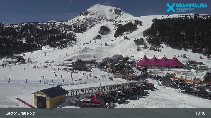 Archived webcam image showing Grandvalira: View Pic de Cubil - Grau Roig on 16 Mar 2026 at 13:27 12:00