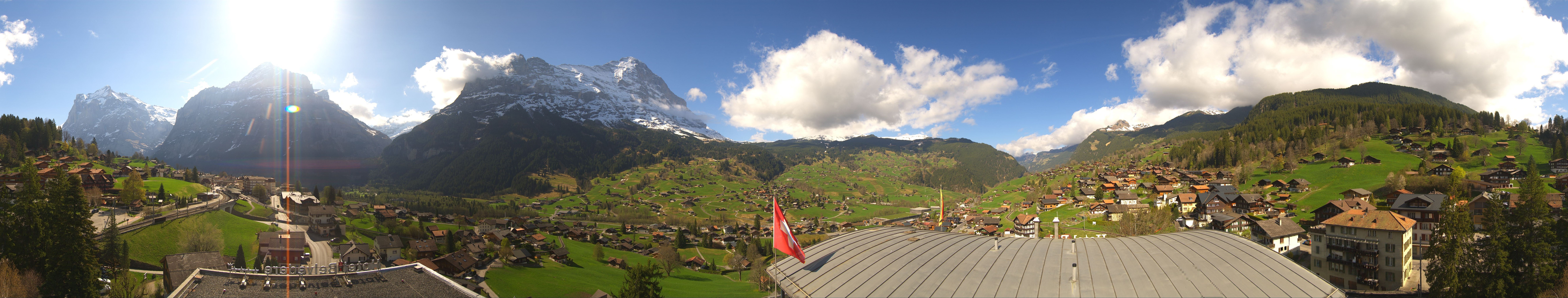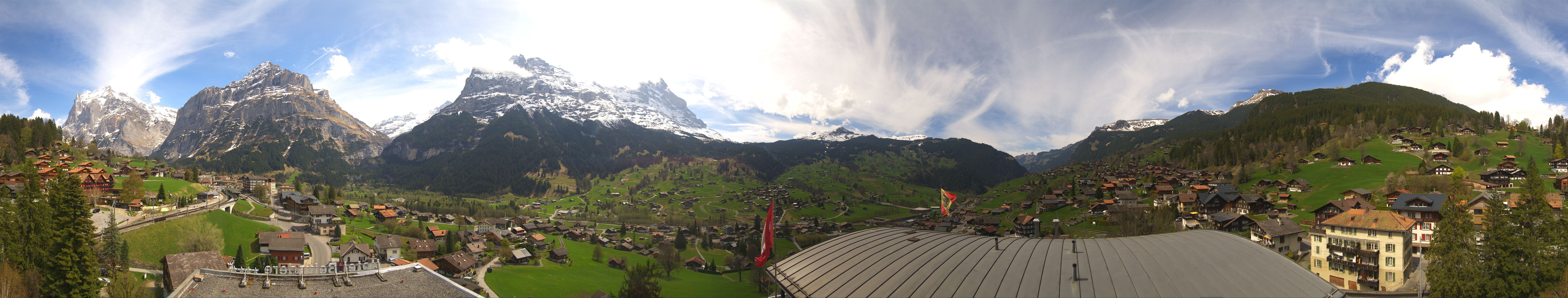 Diese Webcam ist am Dach des Hotel Belvedere in Grindelwald befestigt und zeigt einen 360 Grad Blick rund um Grindelwald und die herumliegenden Berge der Schweizer Alpen.