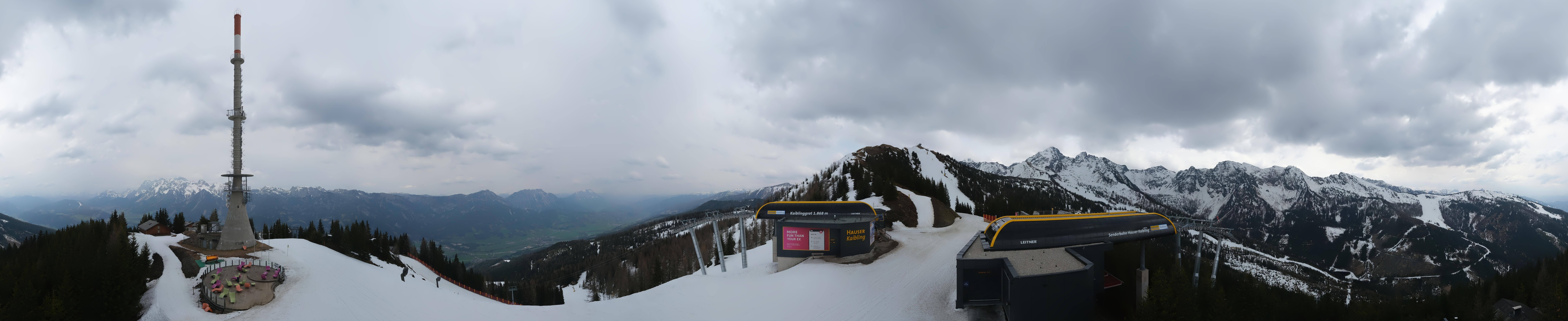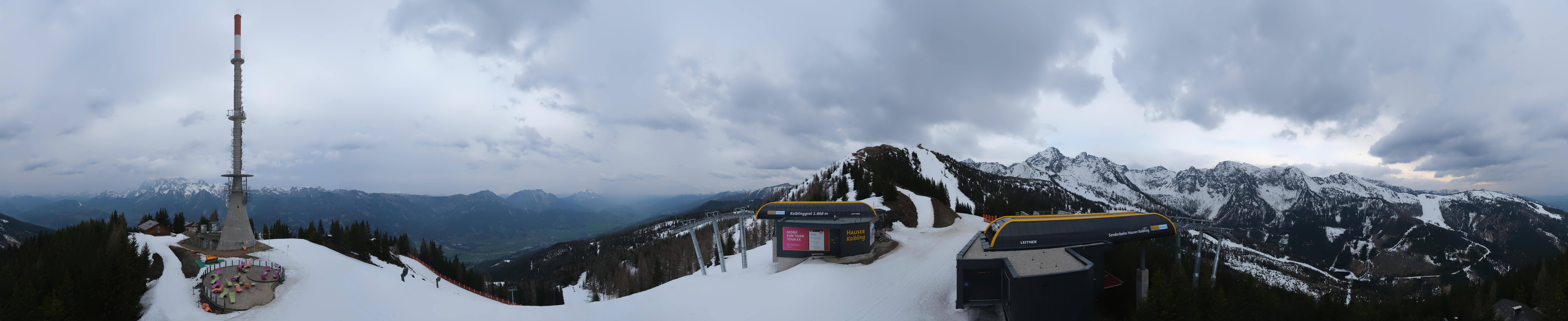 Diese Webcam gibt dir einen Panoramablick auf das Senderplateau im Skigebiet Hauser Kaibling. Hier befinden sich die Bergstationen der 8er Sesselbahn Kaiblinggrat und der Senderbahn (10er Gondel). Zu sehen sind unter anderem der Gipfel des Hauser Kaibling (2015 m) und natürlich der Sendemast.