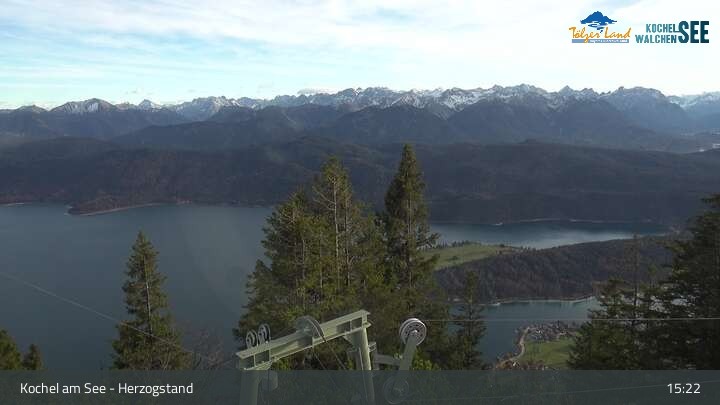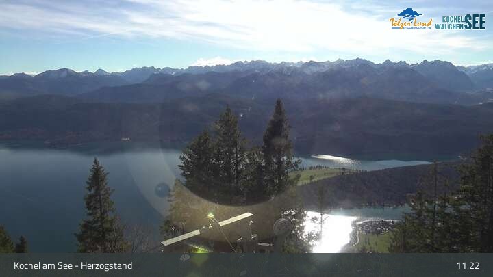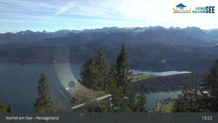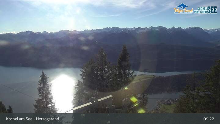 Webcam Blick vom Herzogstand auf den Kochelsee, 1,609 m