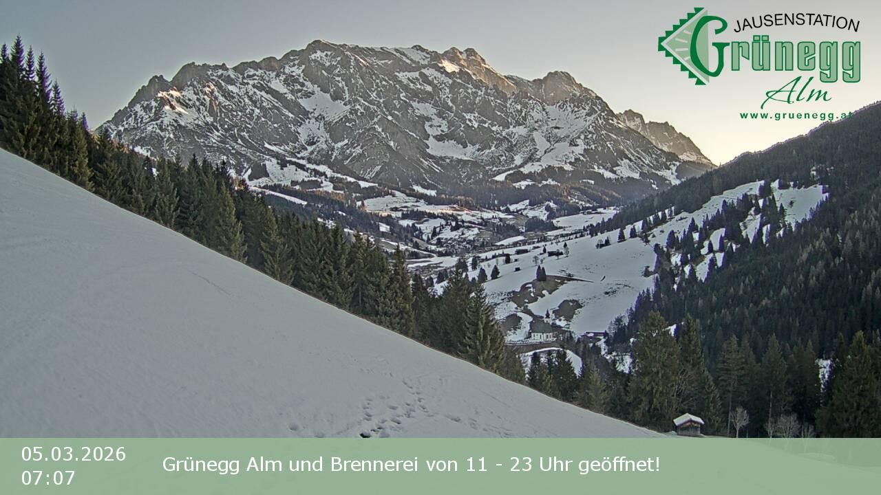 Archiviertes Webcam Bild: Hochkönig Dienten: Grünegg Alm am 05.03.2026 um 07:35 Uhr 07:00