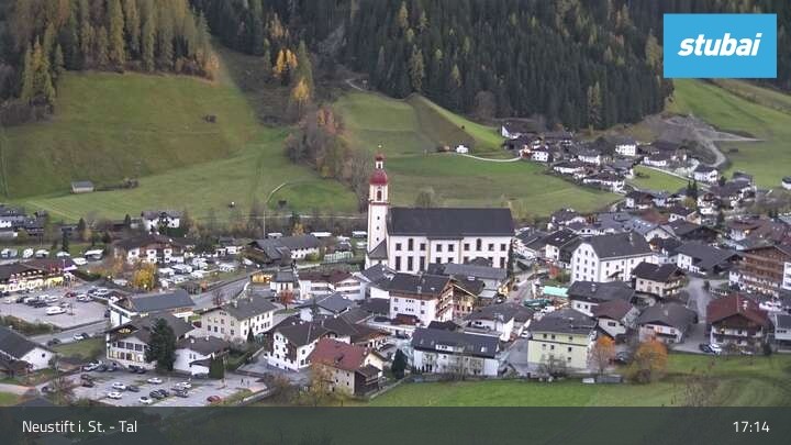 Blick über das Tal und den Ort Neustift im Stubaital.