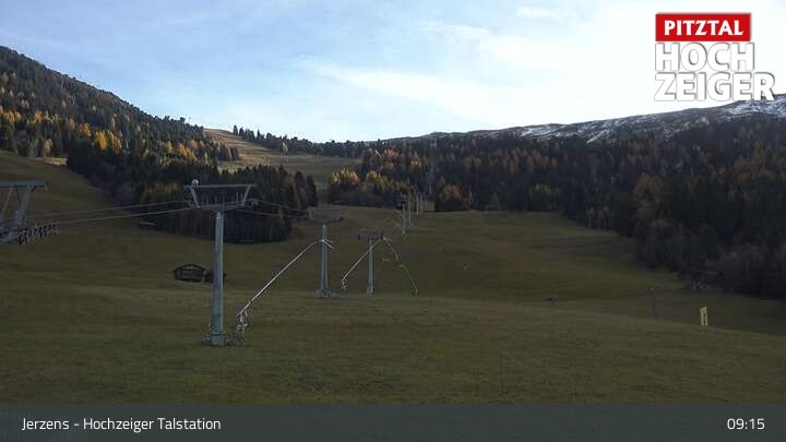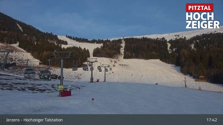Die Webcam zeigt den Blick von der Hochzeiger Talstation auf den Auslauf des 1c Talfahrt.