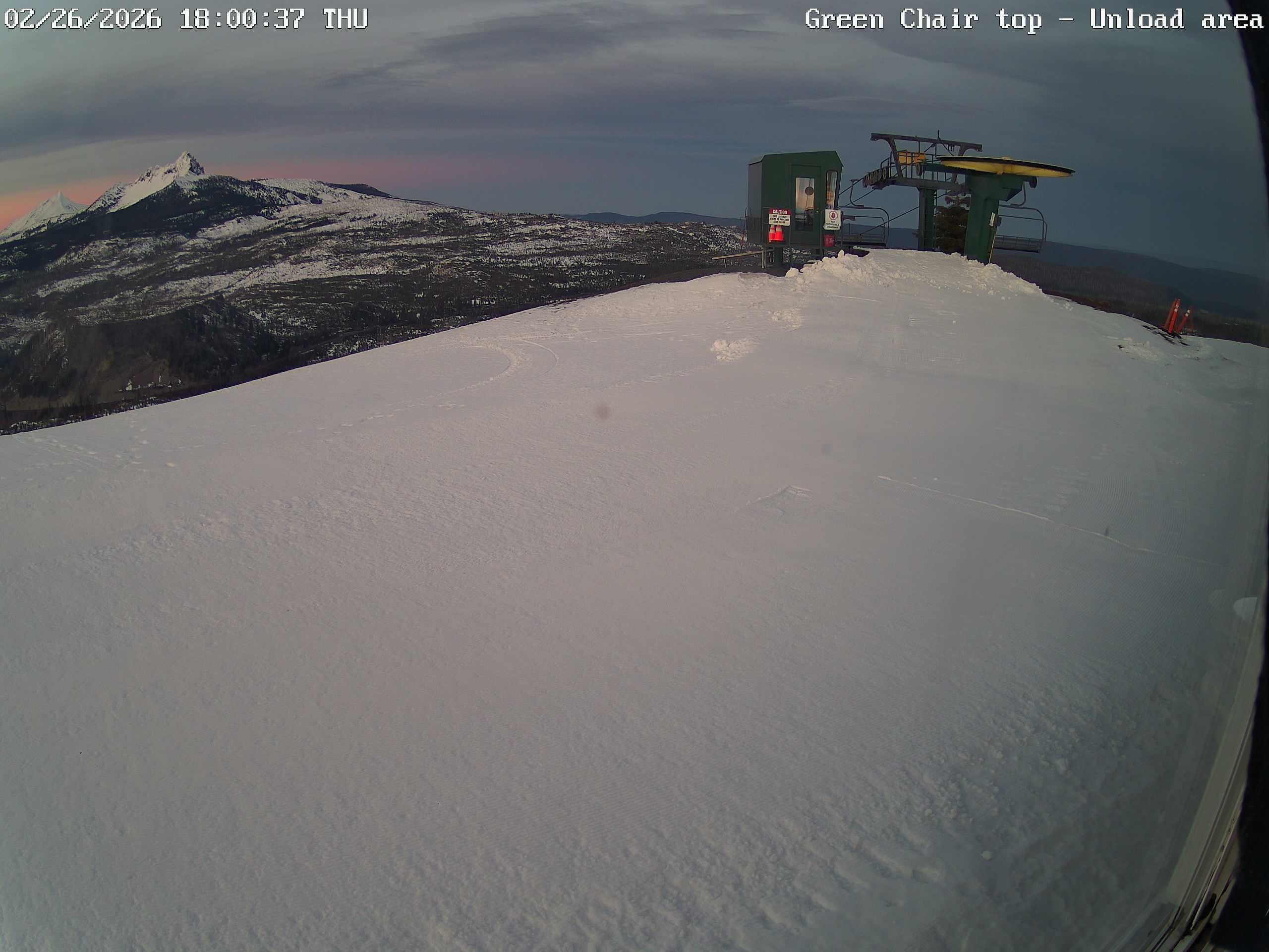 Diese Webcam steht an der Bergstation des Green Chair Sessellifts und blickt Richtung Nordosten. Herrliche Sonnenaufgänge hinter der Liftstation können somit eingefangen werden. Der Lift befindet sich im Skigebiet Hoodoo in Oregon.