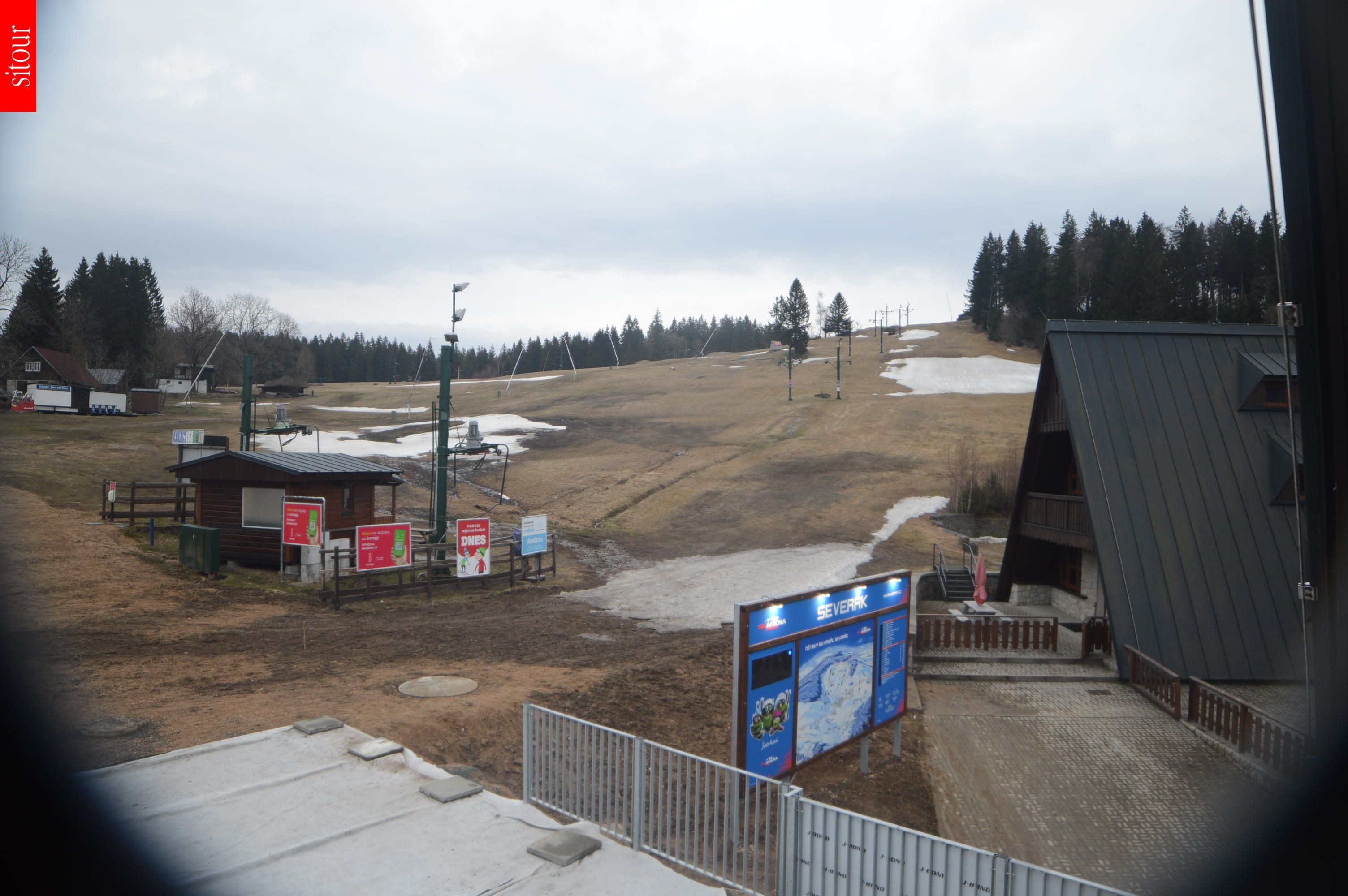 Hier siehst du die Kinderwelt mit Zauberteppich und Skikarussell im tschechischen Skigebiet Severák. Severák gehört wie Bedrichov und Tanvaldsky Spicak zur Ski Arena Jizerky.