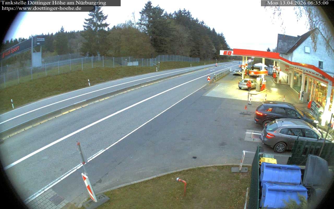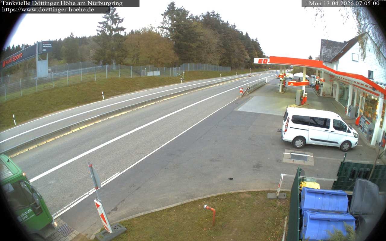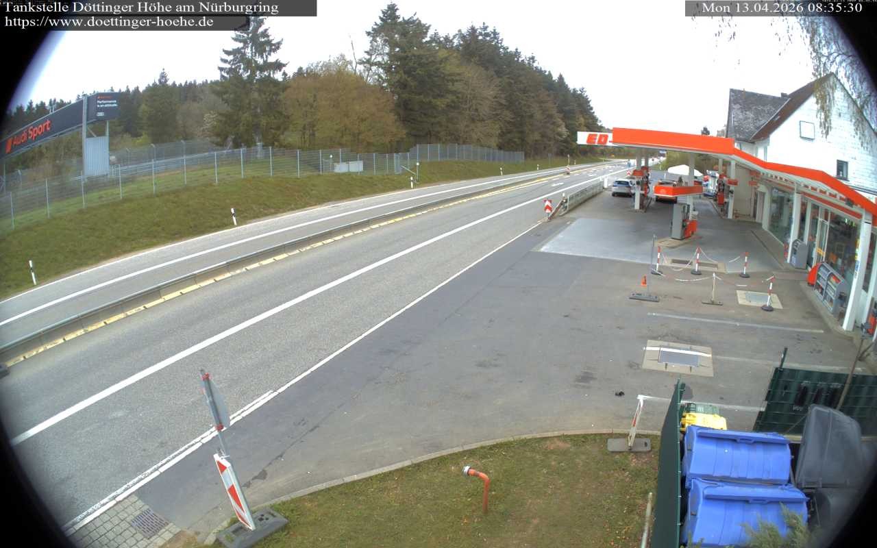 Die Webcam zeigt die Tankstelle an der Döttinger Höhe. Sie liegt in der Nähe der bekannten Rennstrecke am Nürburgring.