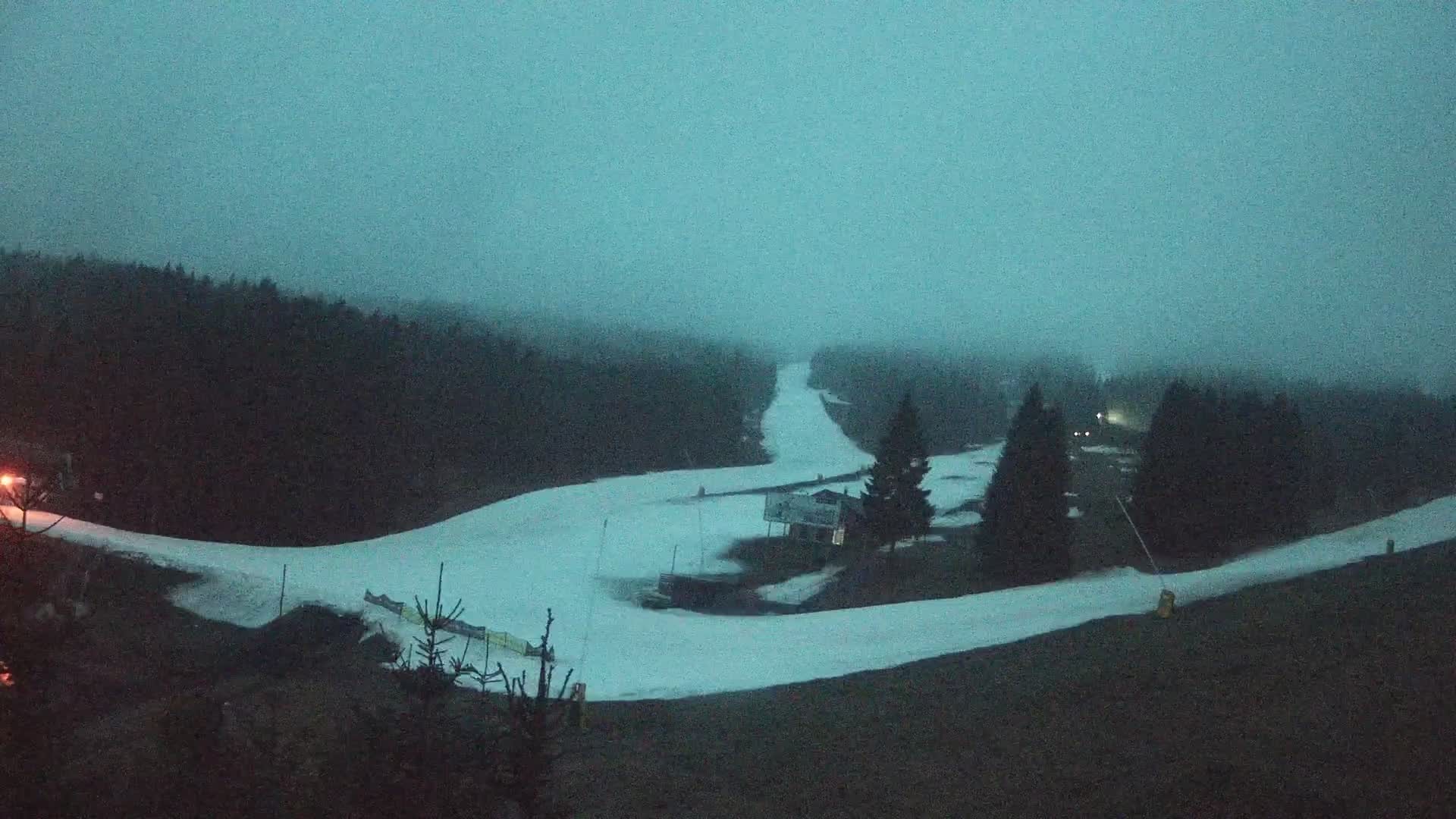 Die Webcam zeigt das Gelände der Skischule im Skigebiet Klinovec. Durch die Nähe zu Deutschland wird hier auch optional in Deutsch unterrichtet, was viele Familien mit Kindern ins tschechische Skigebiet lockt.