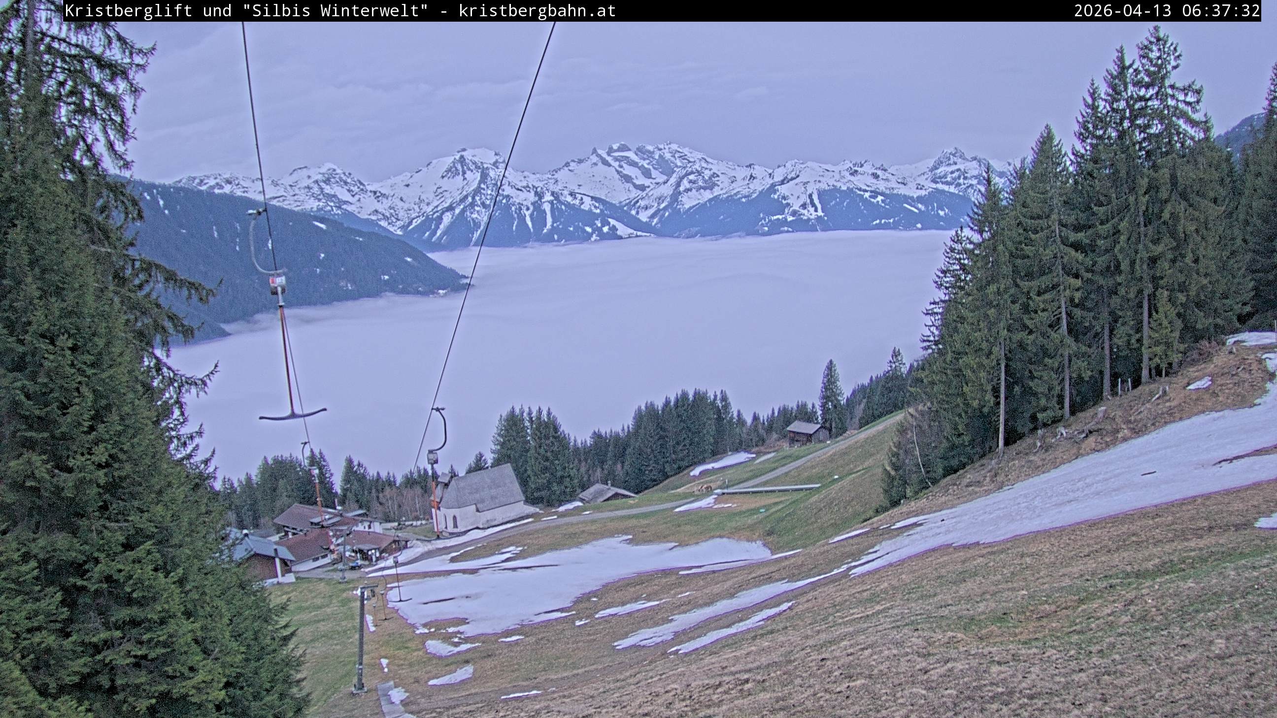 Die Webcam zeigt dir den Blick auf den Kristberglift und die Skipiste im Skigebiet Silbertal-Kristberg. Zu sehen ist außerdem das Panoramagasthaus Kristberg, die St. Agatha Knappenkapelle und die Verwall-und Rätikongebirgsgruppe mit Schruns-Tschagguns, Latschau und Golm.