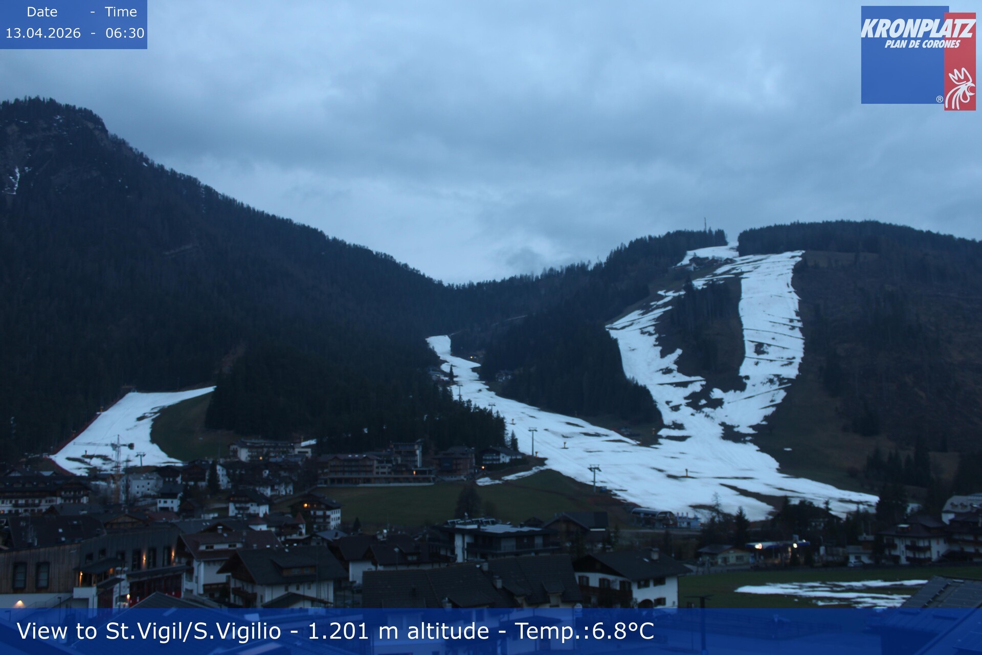 Archiviertes Webcam Bild: St. Vigil am Kronplatz - Weltcupstrecke am 13.04.2026 um 06:53 Uhr Aktuell