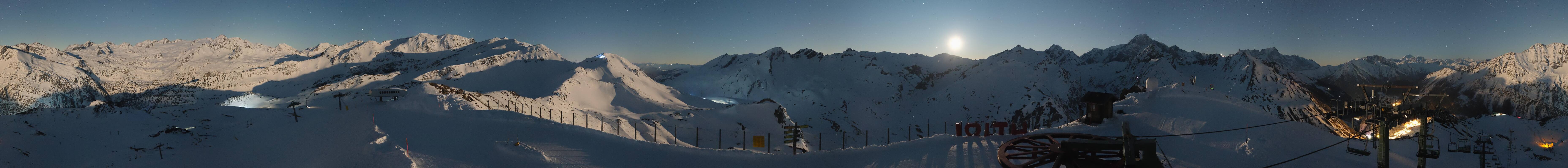 Aussicht von der Bergstation in La Thuile über das Skigebiet im Aostatal. Zudem erkennt man das Skigebiet von La Rosiere in Savoyen/Frankreich. Es ist verbunden mit La Thuile.