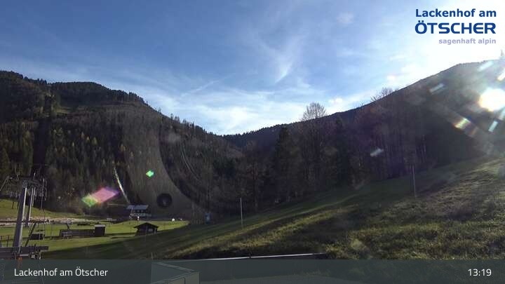 Blick von der Talstation der 4er Sesselbahn Eibenkogl im Skigebiet Lackenhof am Ötscher in Niederösterreich.