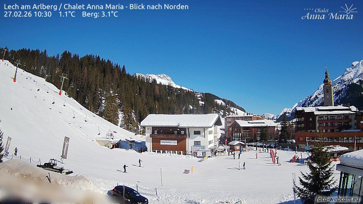 Archiviertes Webcam Bild: Lech am Arlberg: Ausblick Chalet Anna Maria zur Piste am 27.02.2026 um 09:11 Uhr 09:00