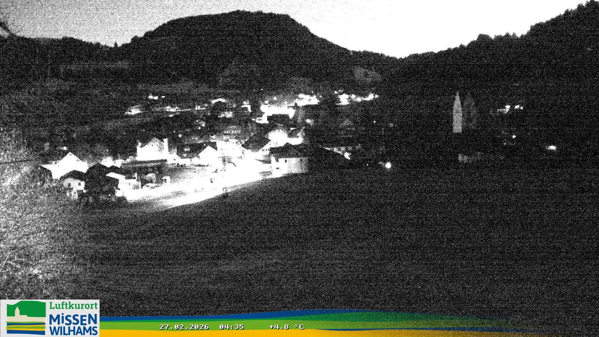 Blick auf den Ort Missen im Allgäu. Unter anderem ist die Pfarrkirche zu sehen.