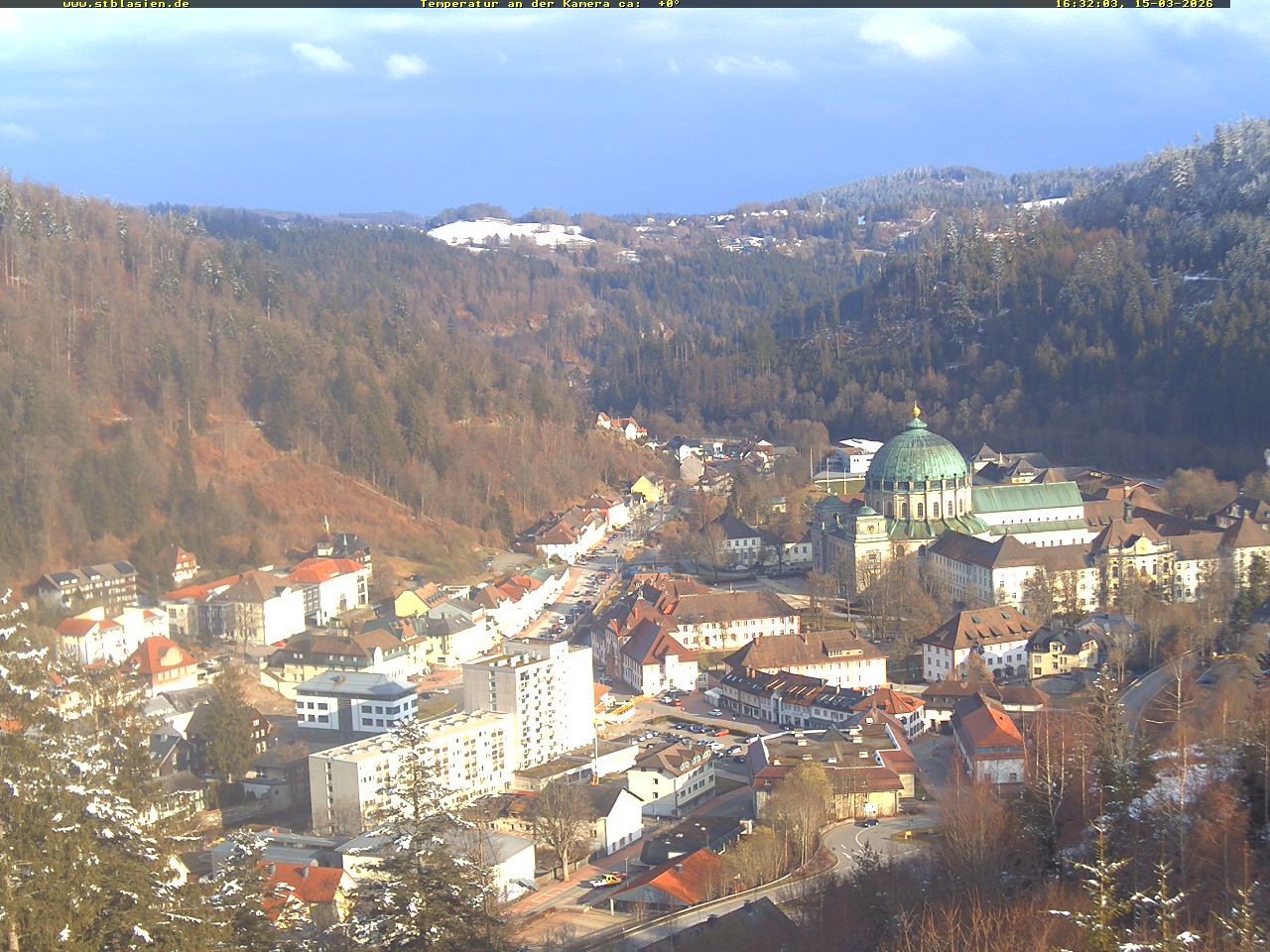 Archiviertes Webcam Bild: St. Blasien im Schwarzwald: Blick vom Weißensteinkreuz am 15.03.2026 um 16:43 Uhr Aktuell