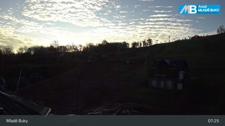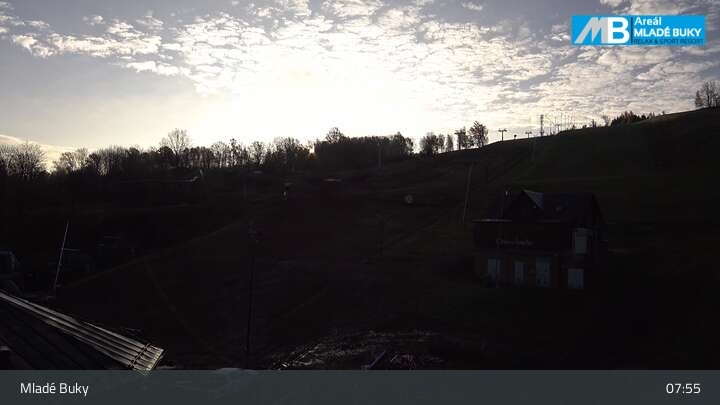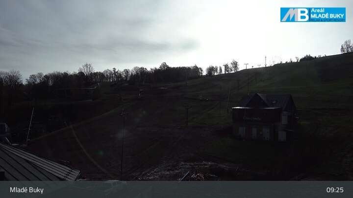 Die Webcam in Blickrichtung Südosten zeigt die Piste und Lifte im Skigebiet Mlade Buky.
