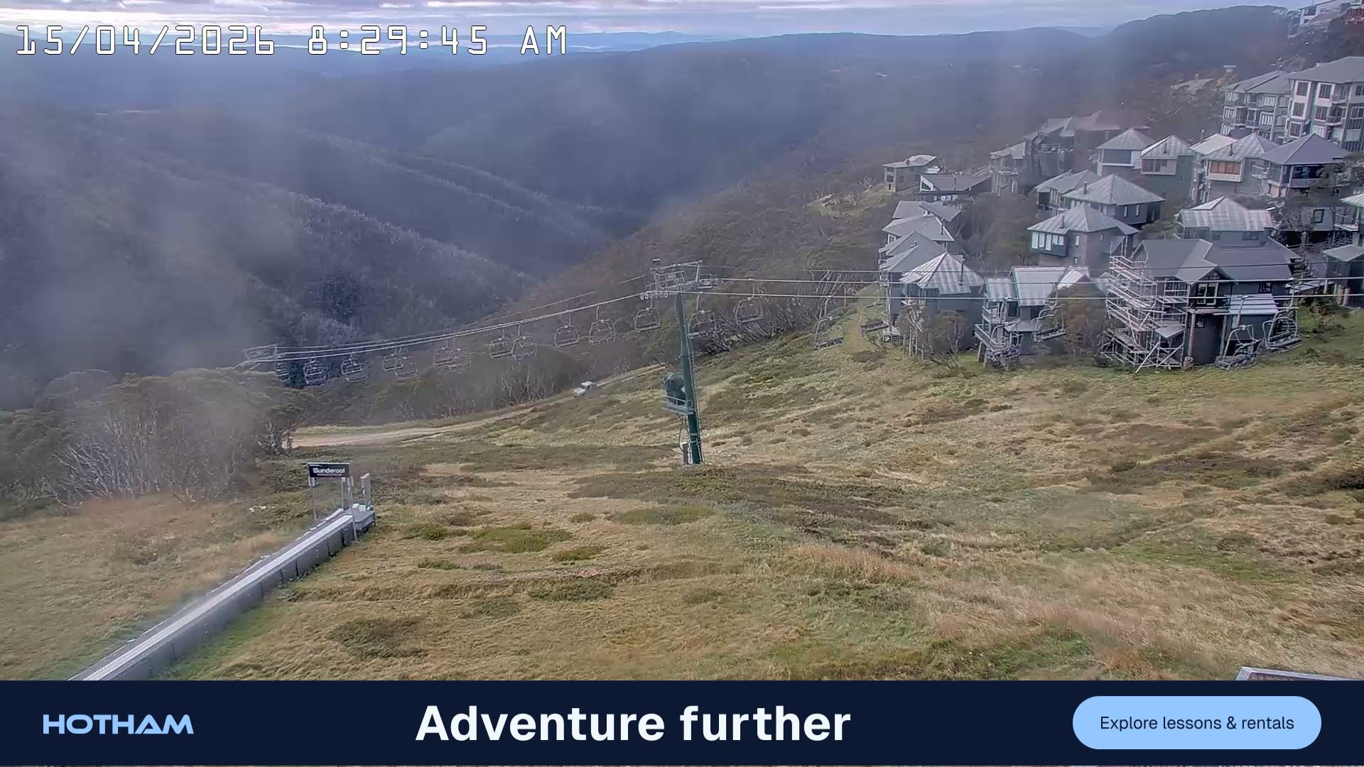 Archived webcam image showing Hotham Alpine Resort - Hotham Heights on 15 Apr 2026 at 02:48 Aktuell