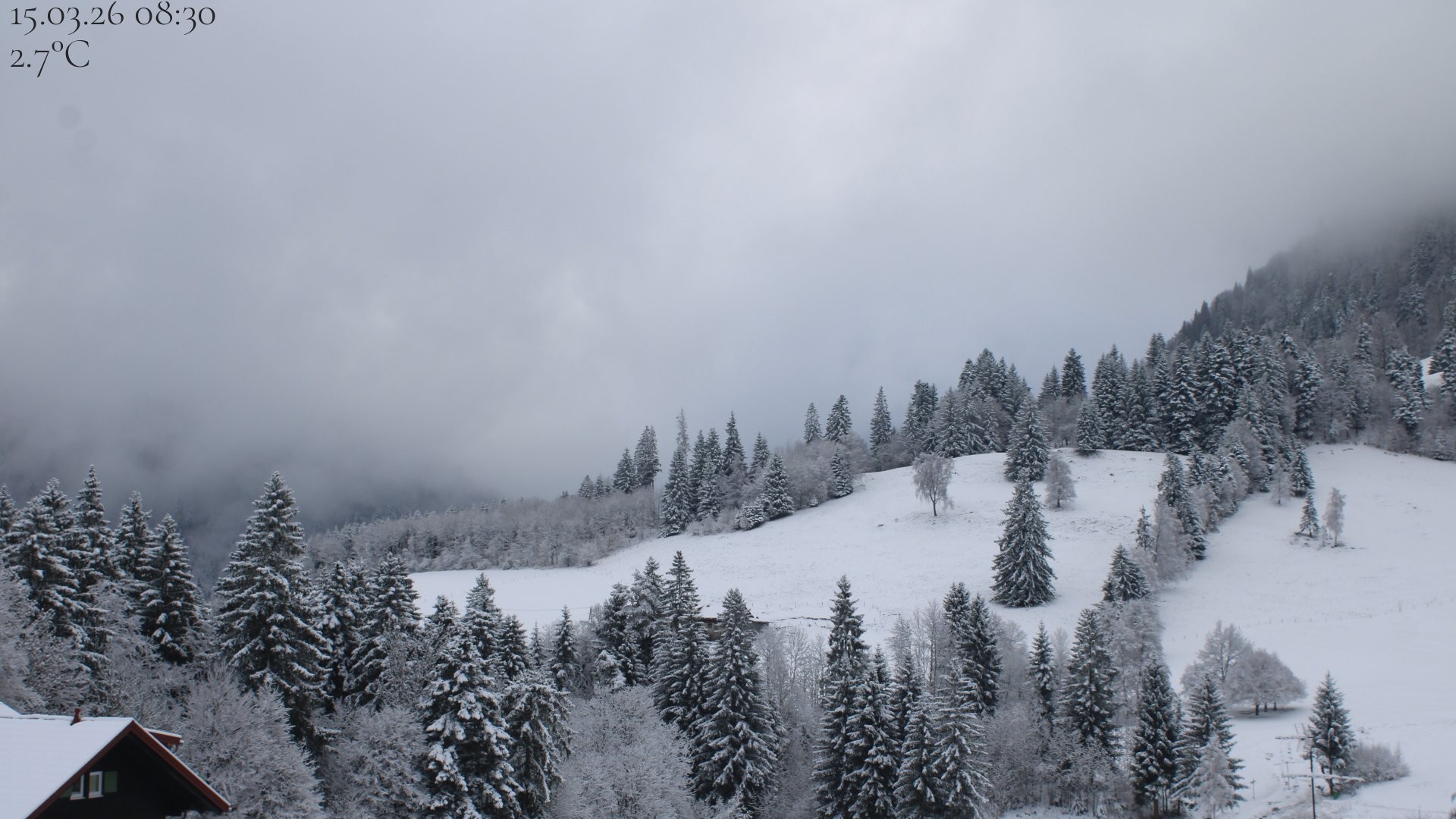 Archiviertes Webcam Bild: Oberstaufen: Biohotel Schratt - Blick zum Hochgrat am 15.03.2026 um 08:35 Uhr Aktuell