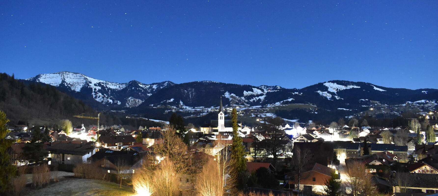 Die Webcam befindet sich am Gesundheitsresort & Spa Rosenalp in Oberstaufen und blickt nach Süden Richtung Hochgrat, Imberg und Fluh.