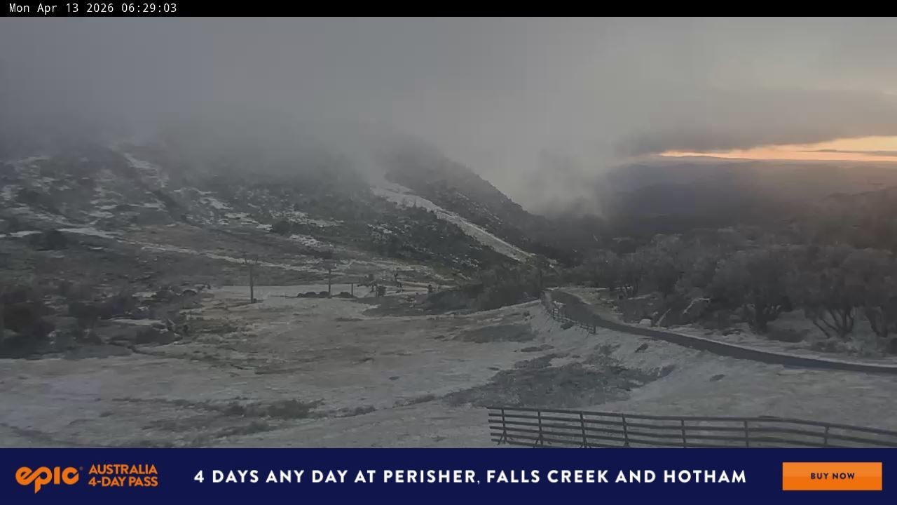 Die Webcam zeigt den Blick von den Berg Blue Cow im größten Skigebiet Australiens - Perisher.