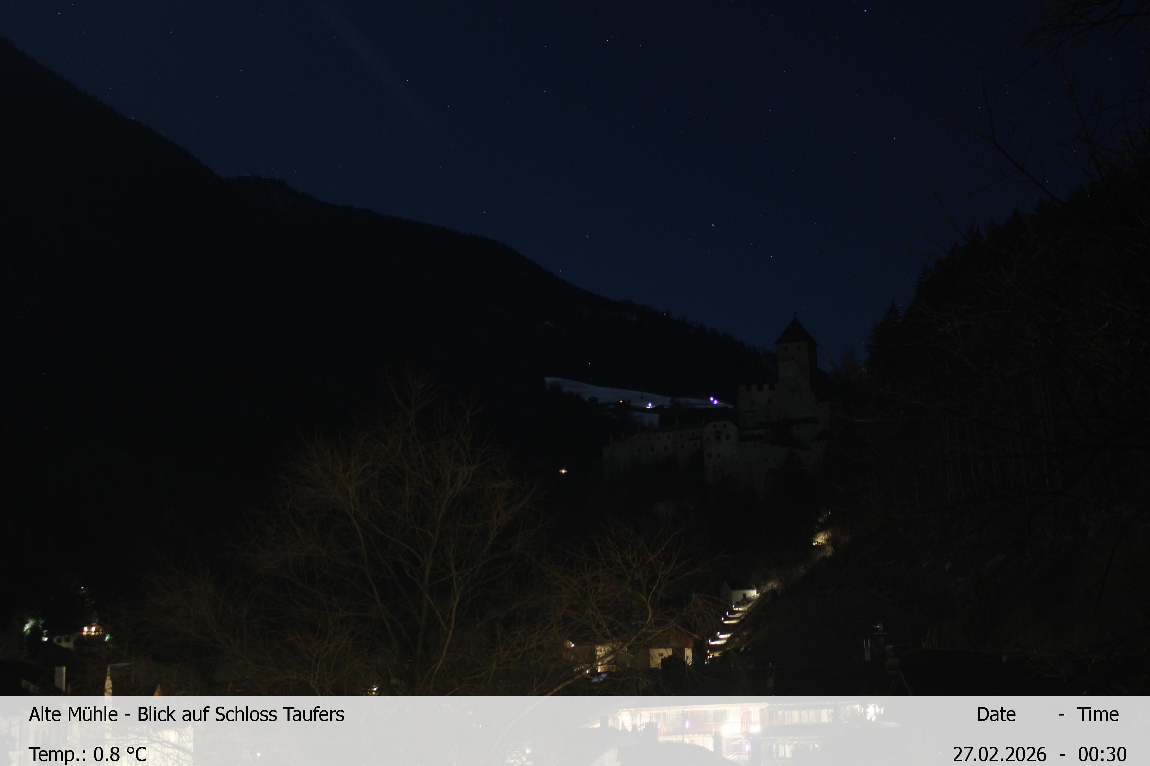 Diese Webcam, installiert am Dach des "Hotels Alte Mühle“ in Sand im Taufers, eröffnet die Sicht auf das Schloss Taufers in Südtirol.
