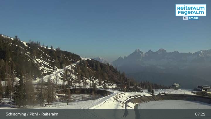Diese Webcam befindet sich oberhalb des Speichersees im Skigebiet Reiteralm (Steiermark). Zu sehen sind links im Bild die Bergstation der 8er Gondel Preunegg Jet und rechts die Bergstation des 4er Sessellifts Sepp`n Jet. Neben dem Preunegg Jet befindet sich die Gasselhöh Hütte, die mit traditionellen Speisen zum Einkehrschwung lädt.