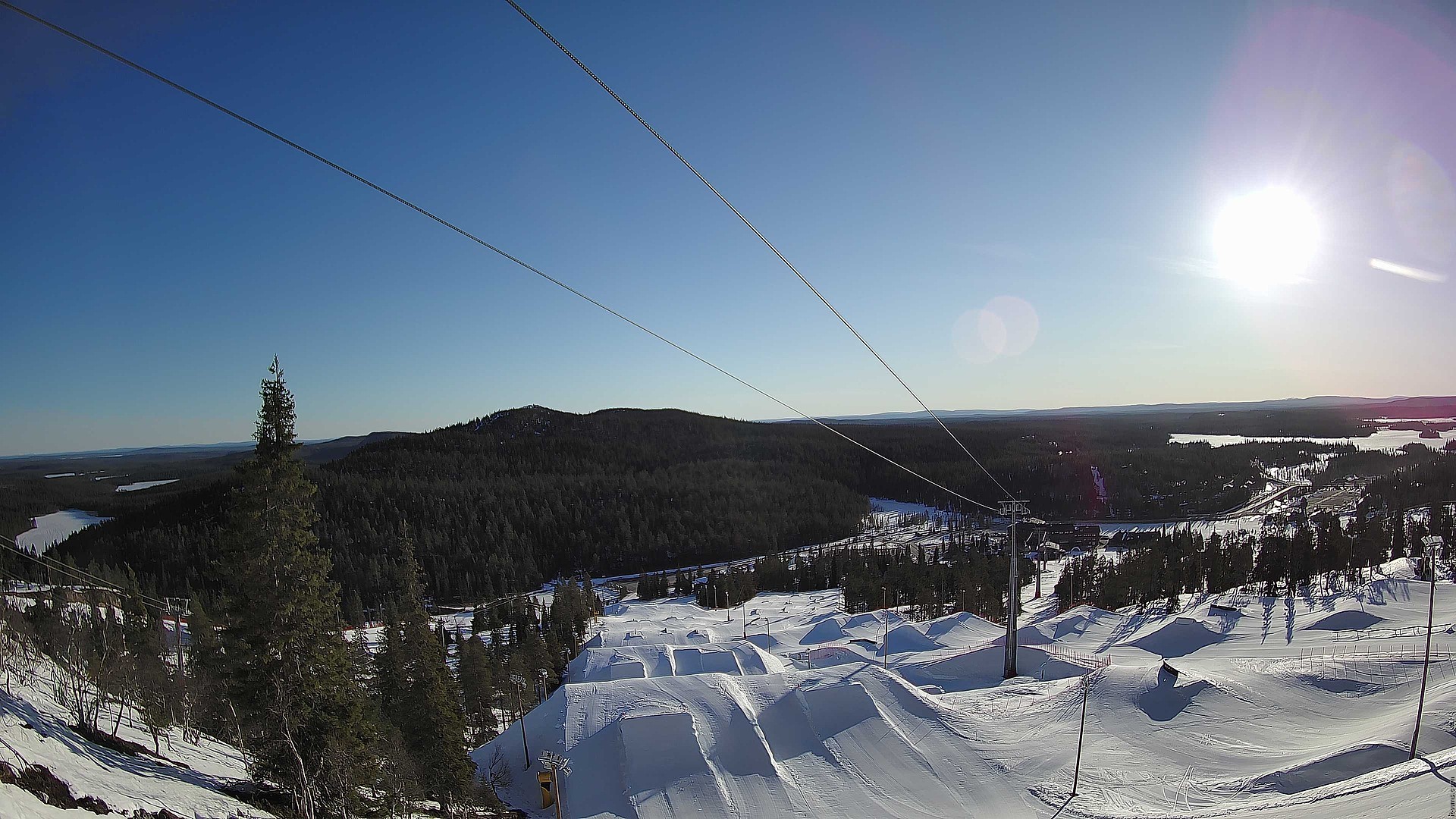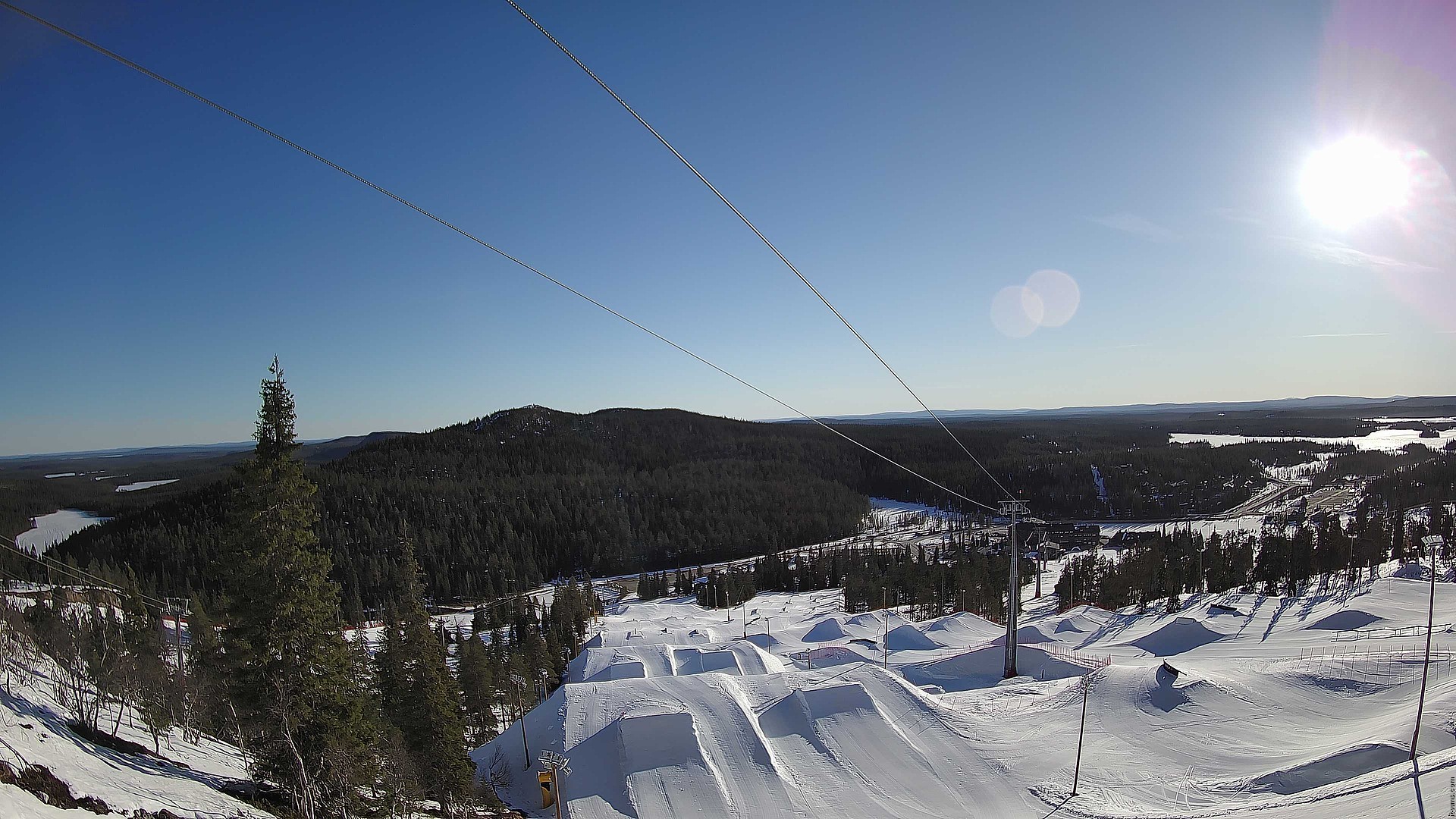 Ausblick auf den Ruka Park im Skigebiet Ruka. Der Snowpark befindet sich neben den Liften Saarua I und Saarua Express.