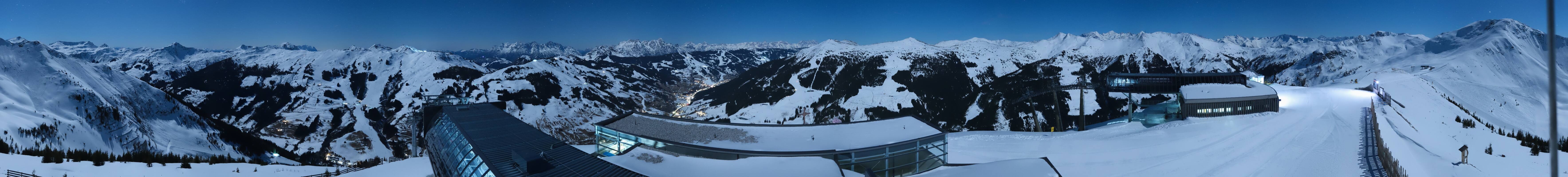 Blick von der Bergstation der Zwölferkogel-Bahn (1.984m) im Skigebiet Hinterglemm.