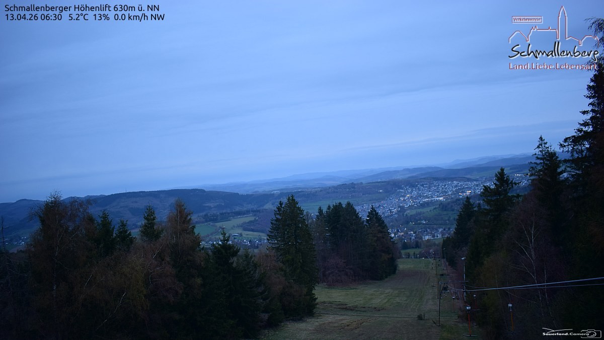 Archived webcam image showing Schmallenberg ski lift and slope on 13 Apr 2026 at 06:52 05:00