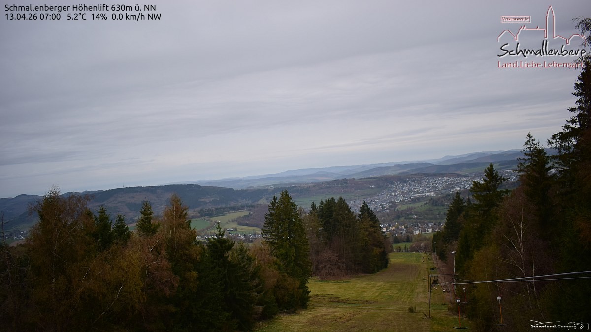 Archived webcam image showing Schmallenberg ski lift and slope on 13 Apr 2026 at 07:52 06:00