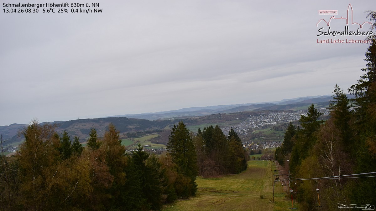 Archived webcam image showing Schmallenberg ski lift and slope on 13 Apr 2026 at 08:52 07:00
