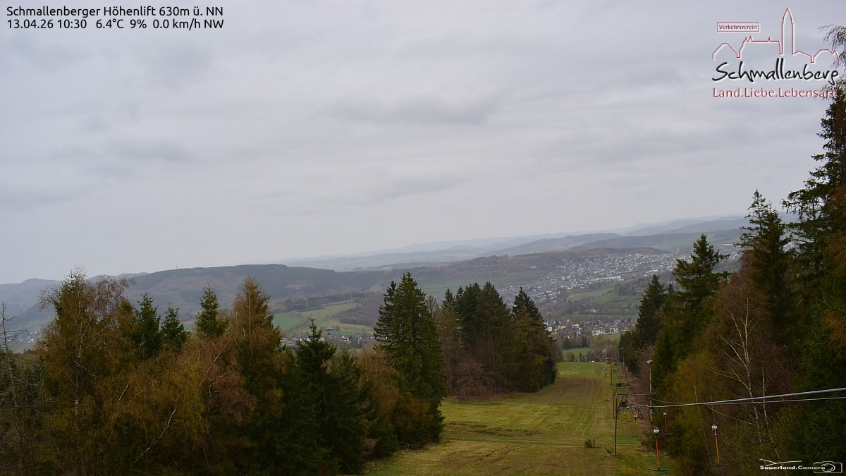 Archived webcam image showing Schmallenberg ski lift and slope on 13 Apr 2026 at 10:52 Aktuell