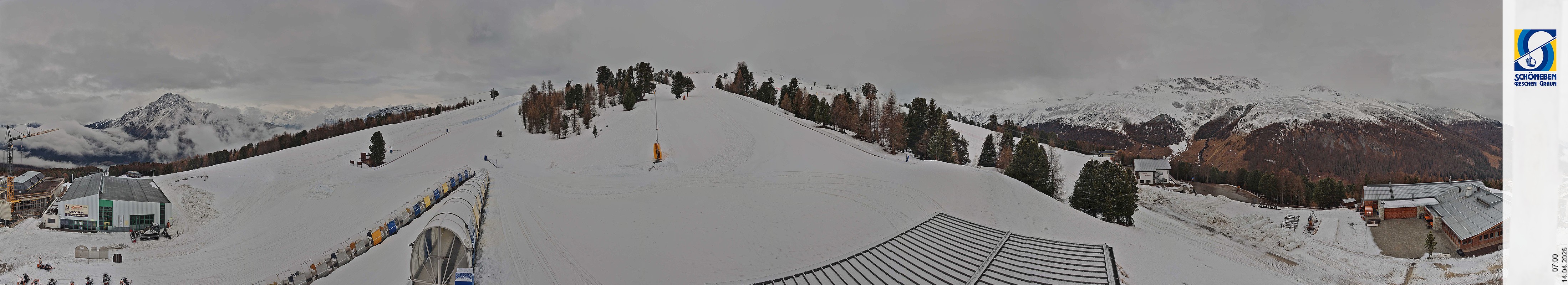 Archiviertes Webcam Bild: Panoramablick von der Mittelstation in Schöneben am 14.04.2026 um 07:45 Uhr 07:00