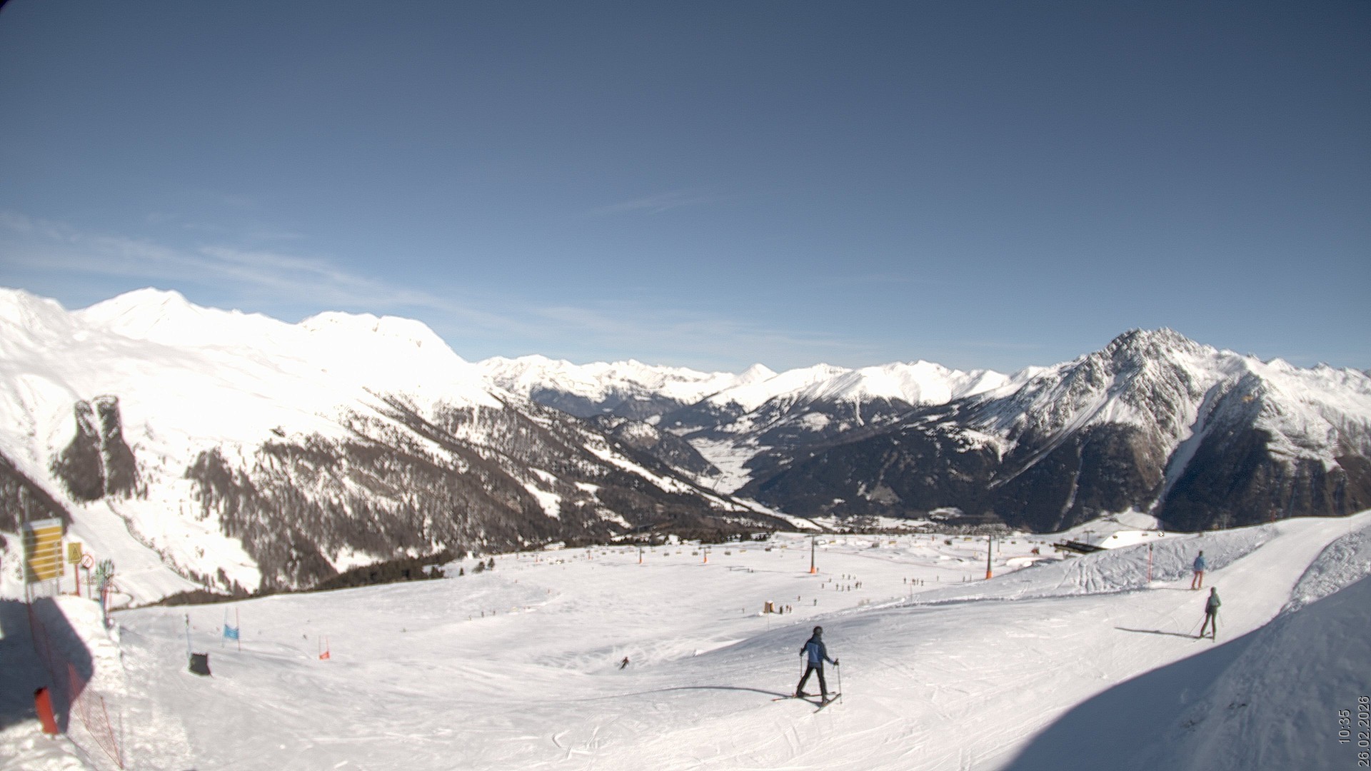 Blick von der Bergstation der Rojensesselbahn im Skigebiet Schöneben im Vinschgau.