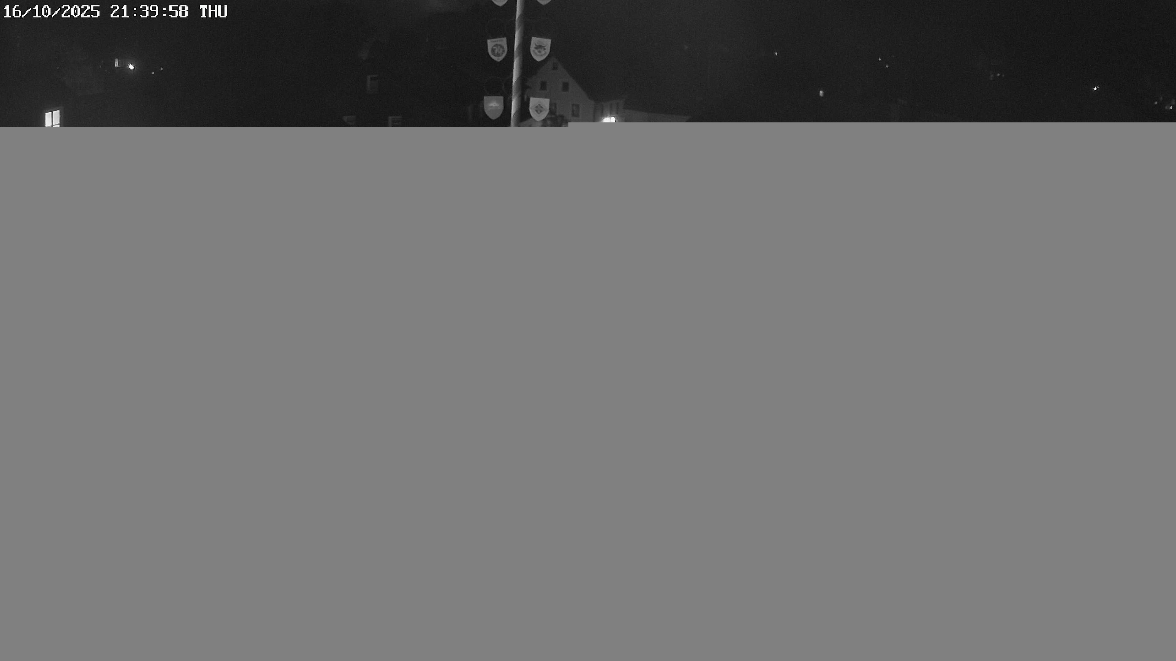 Blick über den Marktplatz von Bischofsgrün im Fichtelgebirge. Im Winter wird hier seit Jahren der größte Schneemann Deutschlands aufgebaut. Im Sommer ist der Maibaum zu sehen.