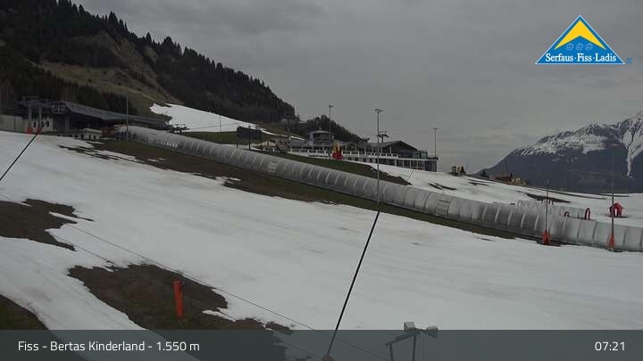 Archived webcam image showing Bertas Kinderland at Serfaus Fiss Ladis on 13 Apr 2026 at 07:09 06:00