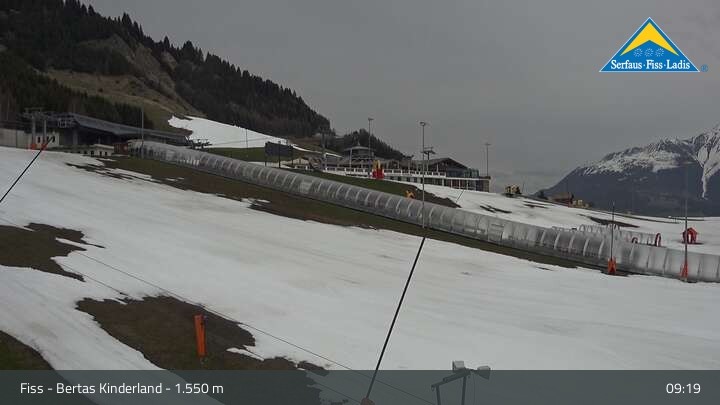 Archived webcam image showing Bertas Kinderland at Serfaus Fiss Ladis on 13 Apr 2026 at 09:09 08:00