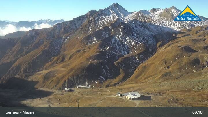Die Webcam eröffnet einen Panoramablick auf den Masnerkopf, dem mit 2.828 Metern höchsten Punkt des Skigebiets Serfaus Fiss Ladis.
