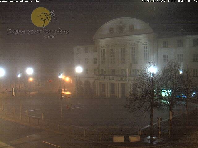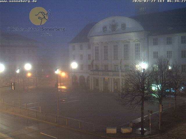 Archiviertes Webcam Bild: Bahnhofplatz Sonneberg - Blick auf das Neue Rathaus am 27.02.2026 um 04:54 Uhr 04:00