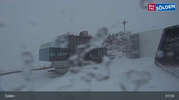 Die Webcam zeigt die Bergstation der Gaislachkogelbahn in Sölden auf knapp über 3000 Metern.