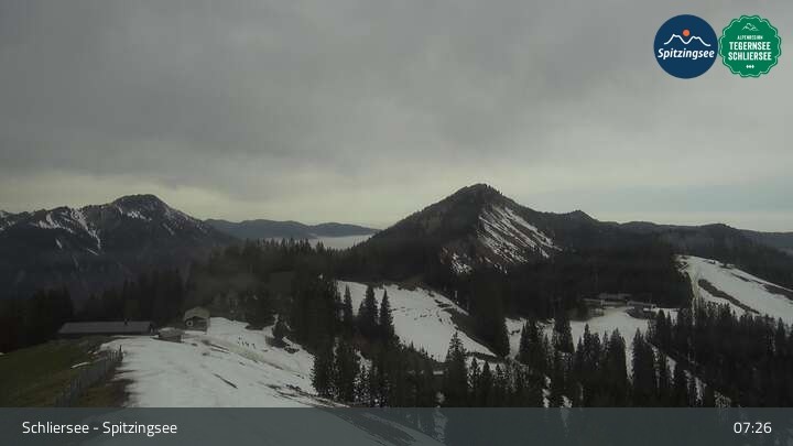 Archiviertes Webcam Bild: Spitzingsee: Panorama Rosskopf Bergstation am 13.04.2026 um 07:03 Uhr Aktuell