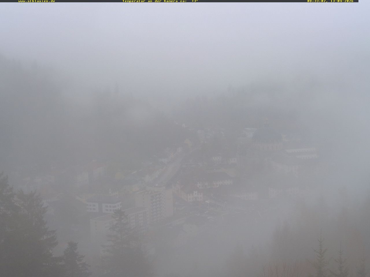 Archiviertes Webcam Bild: St. Blasien im Schwarzwald: Blick vom Weißensteinkreuz am 13.04.2026 um 08:20 Uhr Aktuell