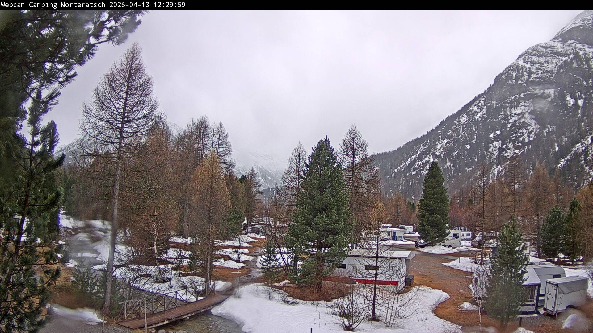 Archived webcam image showing Camping Morteratsch, Engadin on 13 Apr 2026 at 12:01 Aktuell