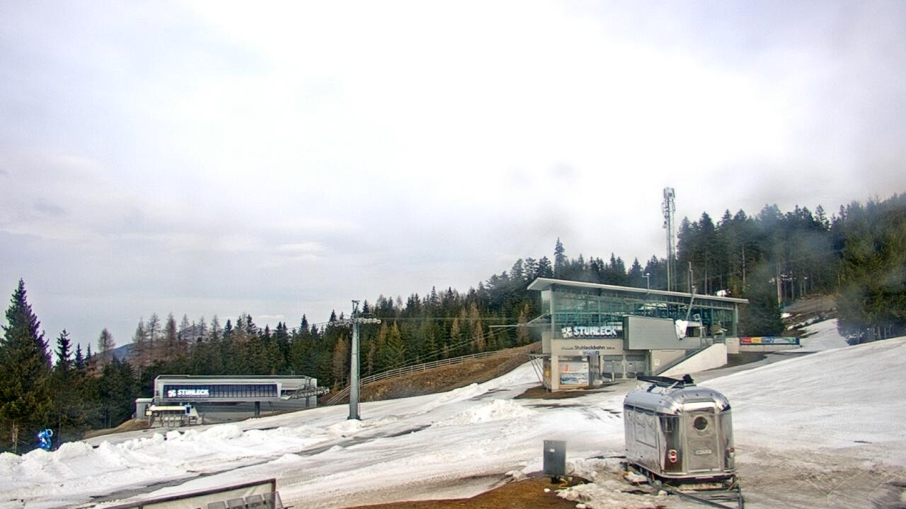 Archiviertes Webcam Bild: Stuhleck: Bergstation Stuhleckbahn am 13.04.2026 um 12:37 Uhr 12:00