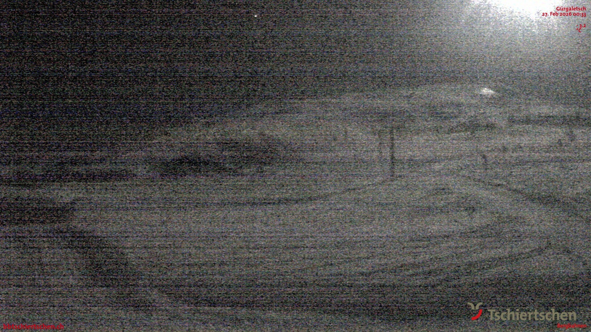 Die Webcam blickt den Berg Gürgaletsch (2450m) hinauf entlang des Schleppliftes im Skigebiet der Tschiertschen Bergbahnen von Alp Farur aus