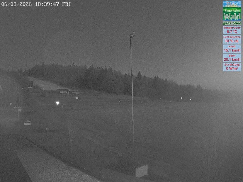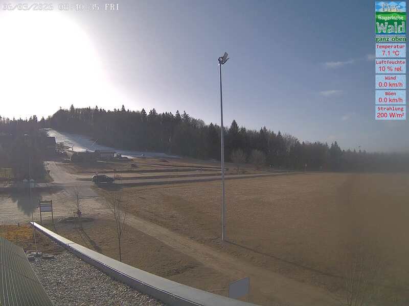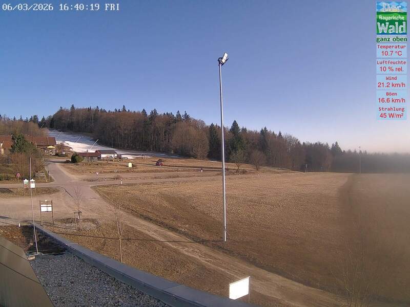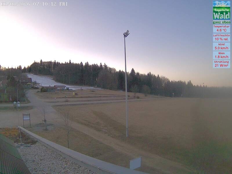 Die Webcam blickt auf die Skipiste in Althütte bei Waldmünchen im Bayerischen Wald. Die Kamera befindet sich auf dem Dach des Nordic Aktivzentrums Oberer Bayerischer Wald.