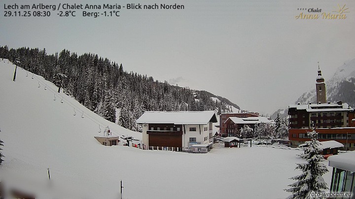 Webcam Lech am Arlberg: Ausblick Chalet Anna Maria zur Piste, 4770 ft