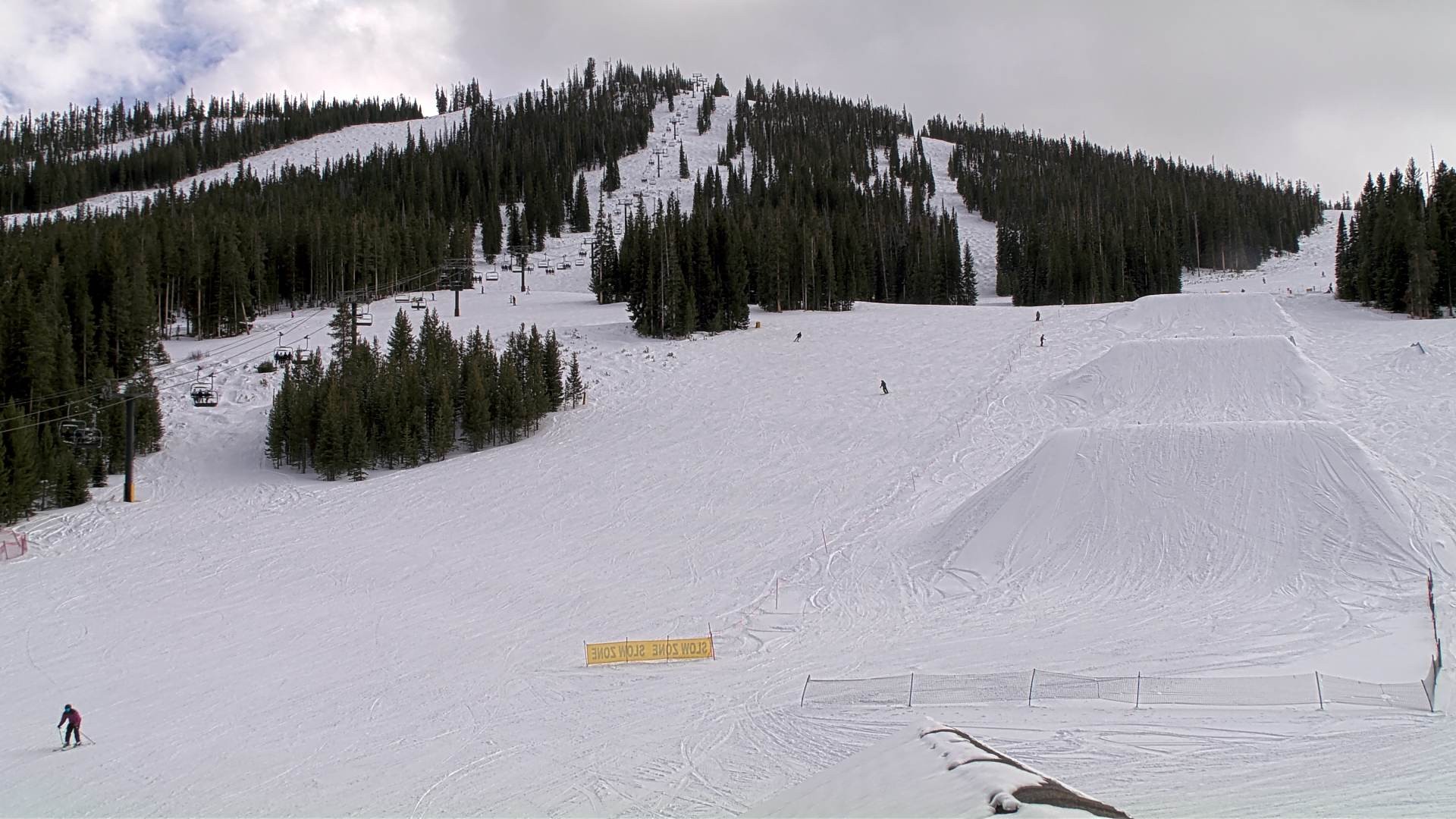 Die Webcam am Snoasis zeigt einen Teilbereich des Skigebiets Winter Park am Eskimo Express Lift.